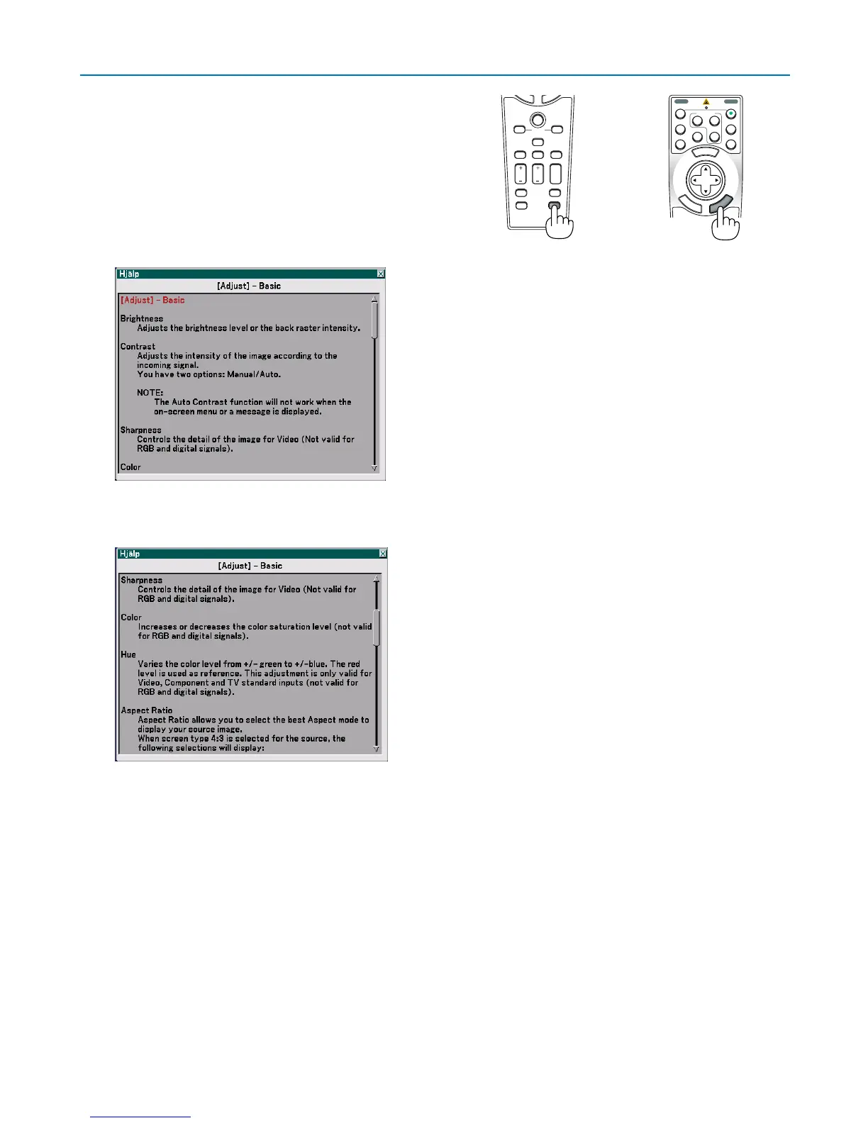 1. Tryck på HELP-tangenten på fjärrkontrollen.