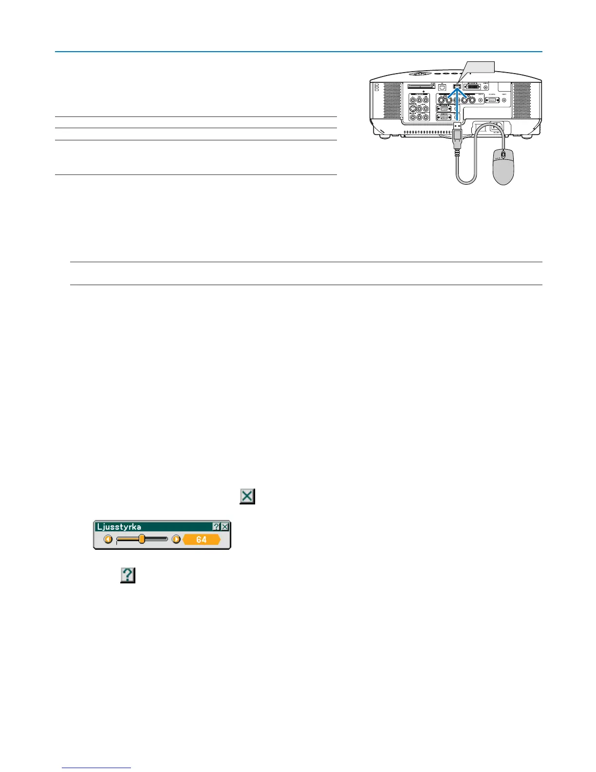 OBSERVERA: Projektorn stöder inte säkert alla typer av USB-möss.