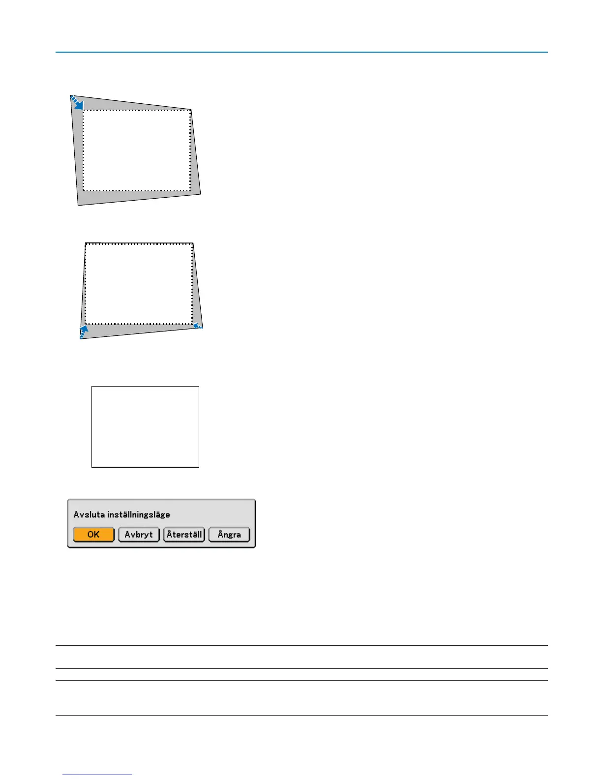 7. Använd SELECT-tangenten 왖왔왗왘 för att flytta den projicerade bildramen på det sätt som visas i exem-
