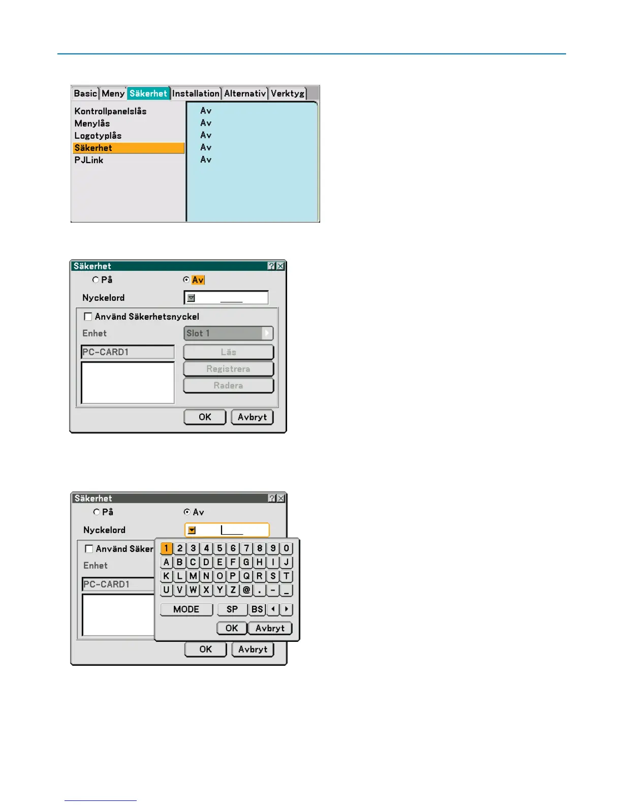 5. Tryck på ENTER-tangenten för att visa Security-skärmen.