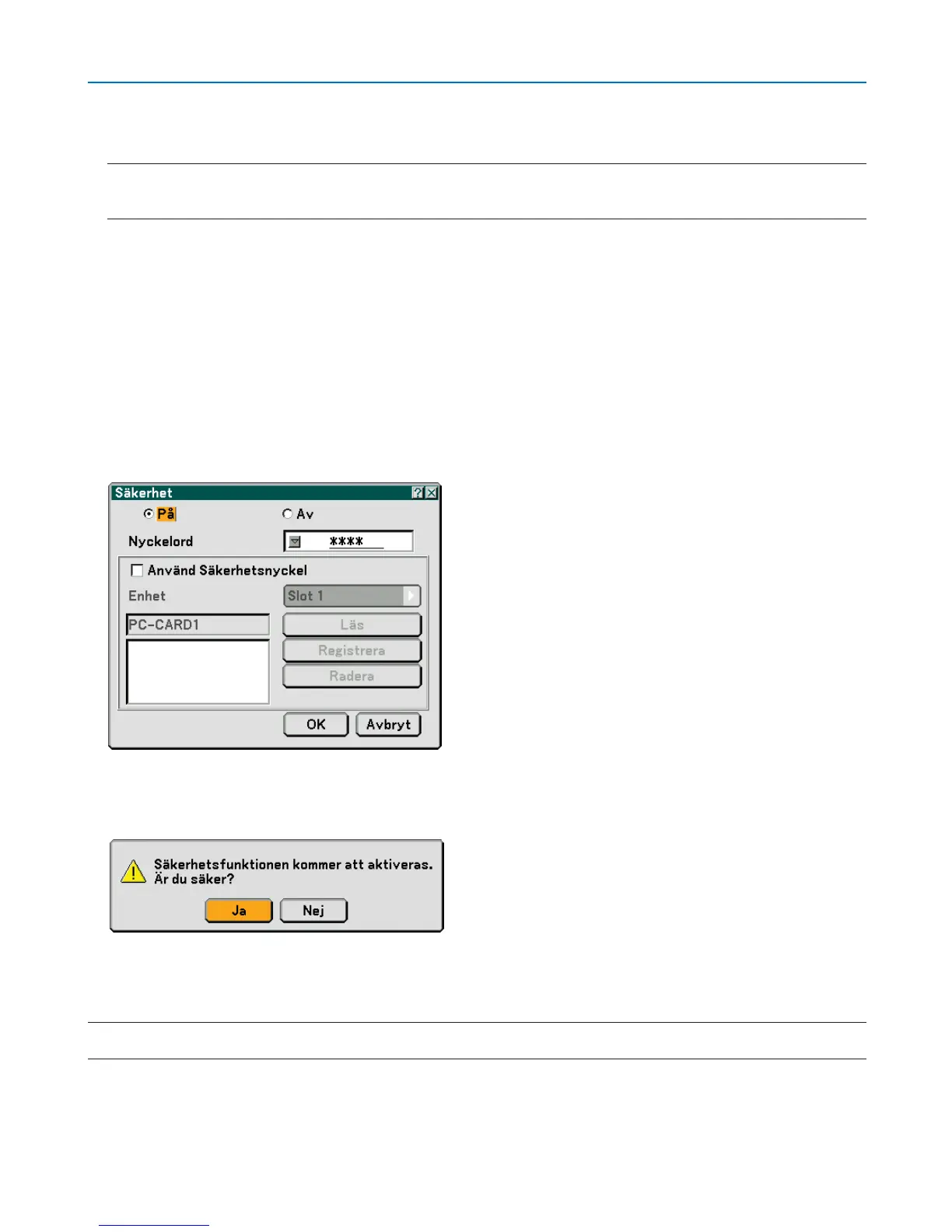 OBSERVERA: Ett PC-kort kan användas som säkerhetsnyckel. Du kan hoppa över inmatningen av nyckelord genom att istället sätta