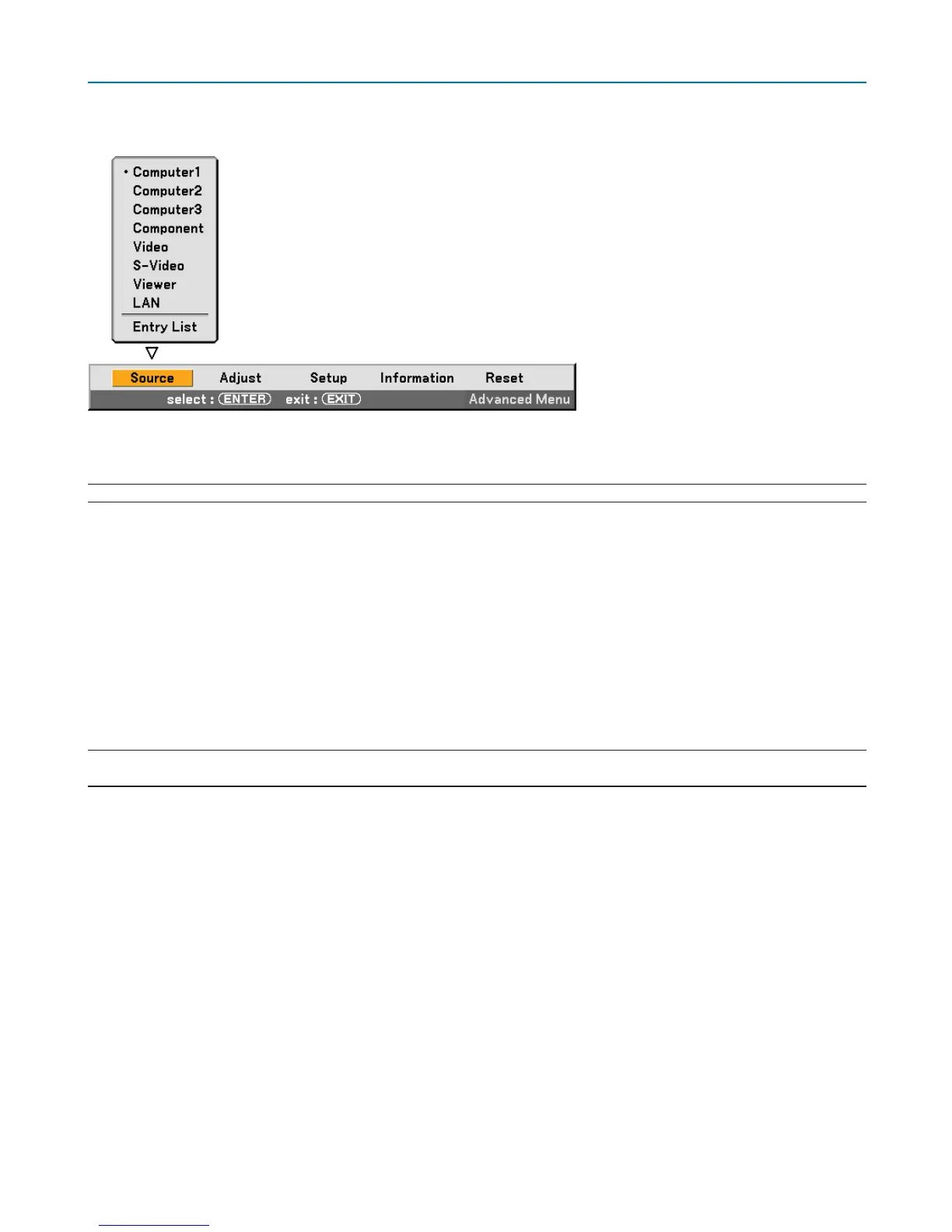 Selects a signal from the LAN port (RJ-45) or the NEC optional wireless LAN card plugged into the projector's card