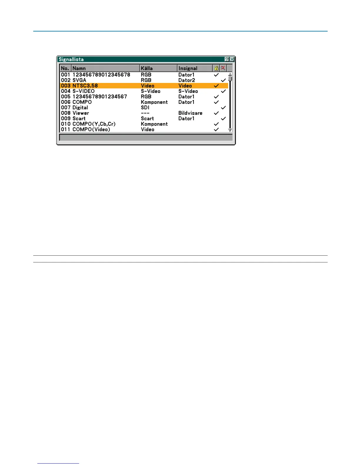 1. Visa signallistan [Signallista].
