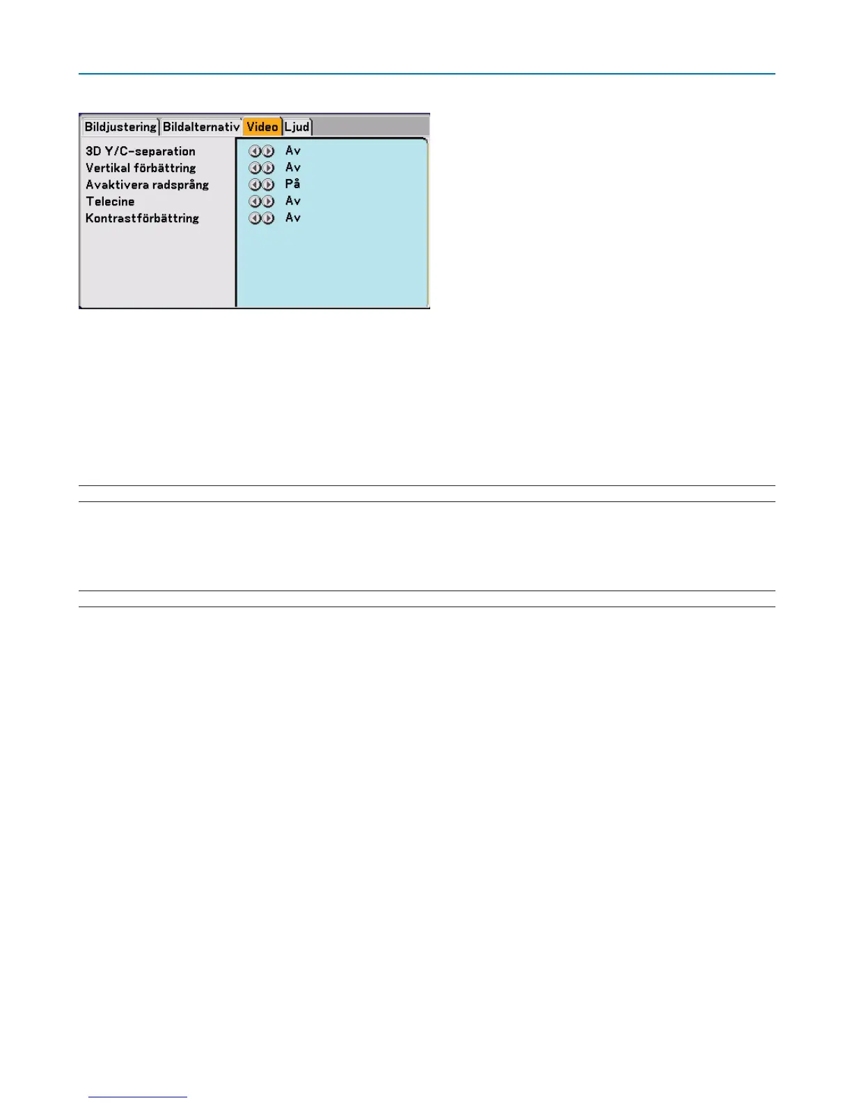 OBSERVERA: Den här funktionen är endast tillgänglig för videosignaler i NTSC3.58.
