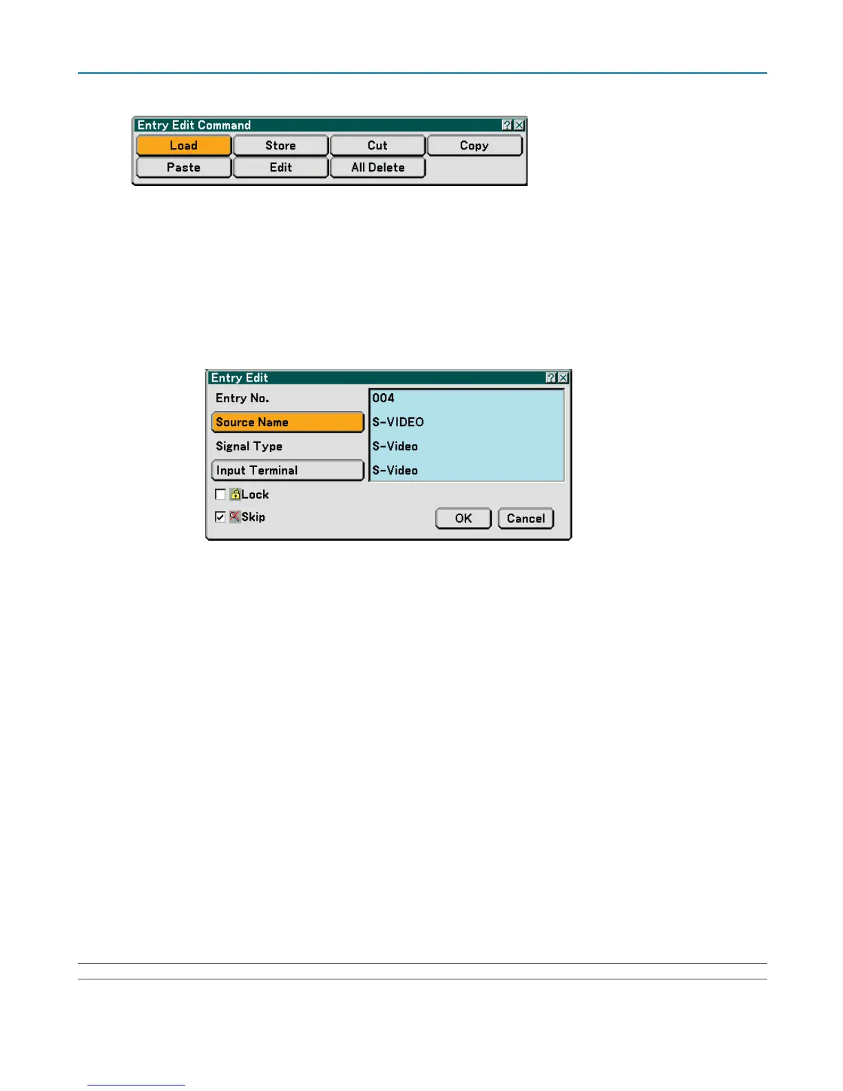 NOTE: When all the signals in the [Entry List] are deleted, the currently projected signal will be also deleted except locked signals.