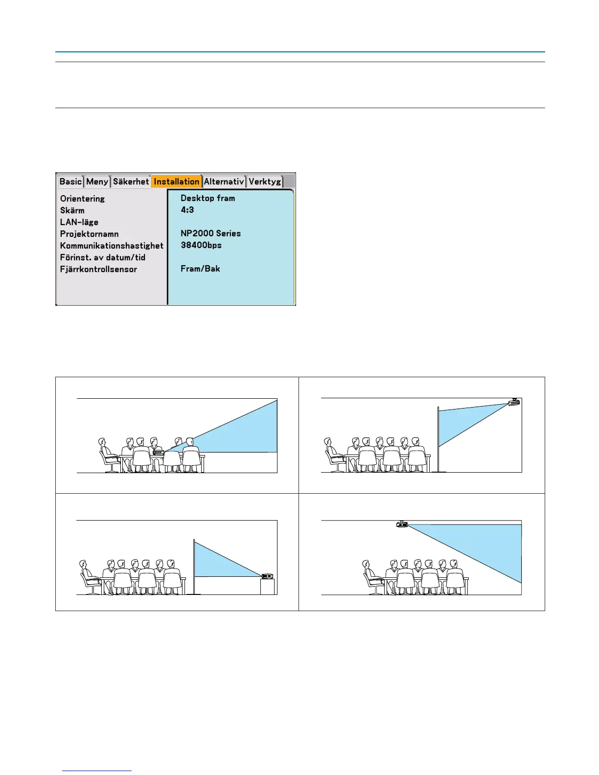 Omorienterar bilden för att passa din typ av bildprojektion. Alternativen är: Desktop fram, Tak bak, Desktop bak och