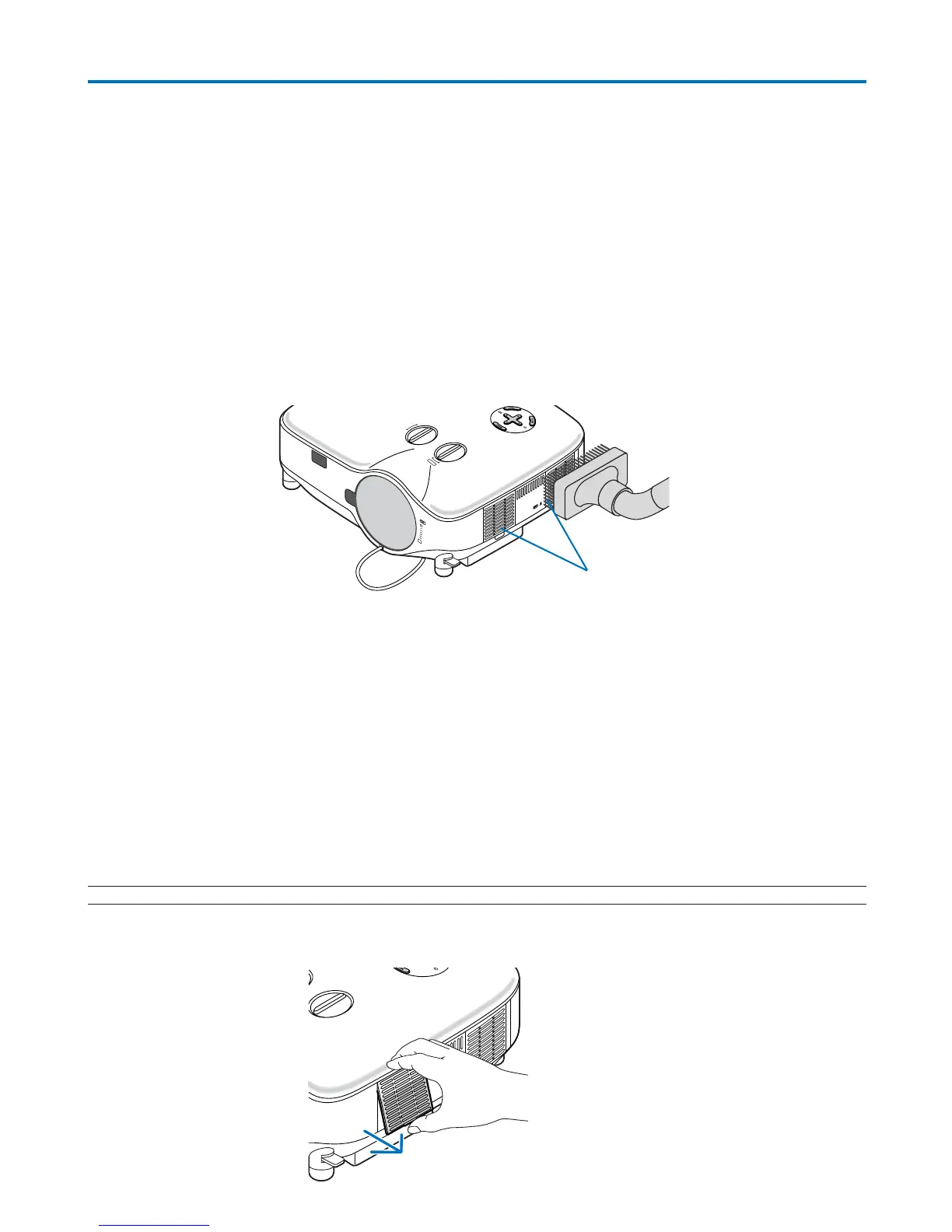 • Innan du byter filter ska du torka bort damm och smuts från projektorhöljet.