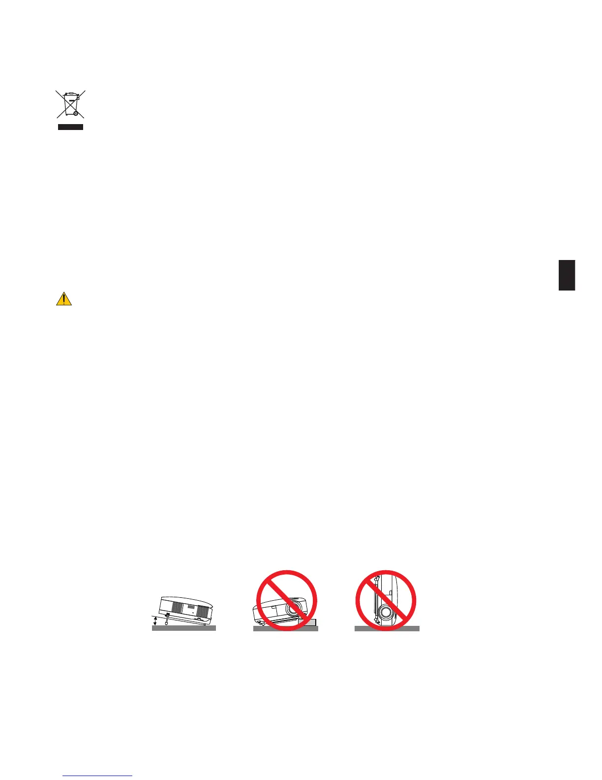 aufgestellt oder an der Decke installiert werden, da anderenfalls die Lebensdauer der Lampe drastisch verkürzt wird.