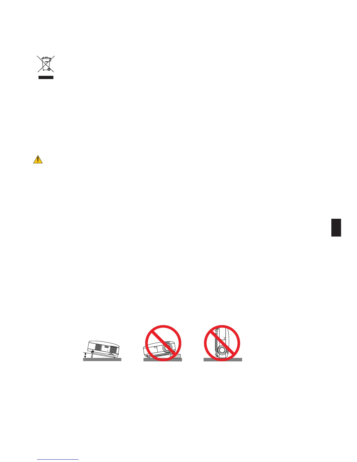 El ángulo de inclinación del proyector no debe exceder de 10 grados. Tampoco se debe instalar el proyector de