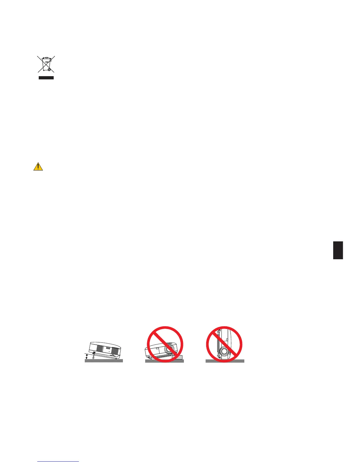 Projektorn får inte lutas mer än 10 grader och får inte installeras på ett annat sätt än på ett bord eller hängande i taket,