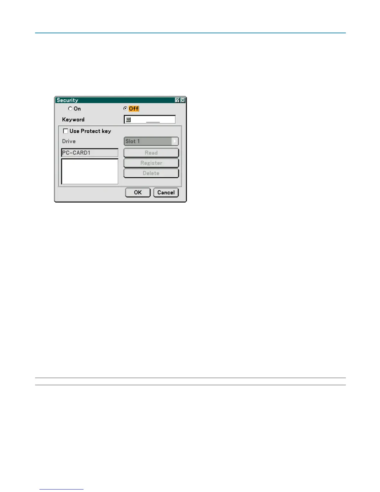 Use Protect key ..... Check this box to lock your projector when using a PC card. To use a keyword without a PC card, do not