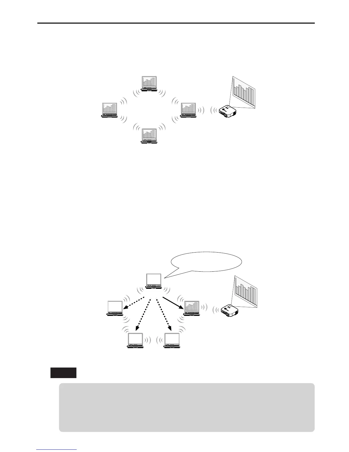 When “Meeting Mode” is used, projected images can be sent to the personal computers of