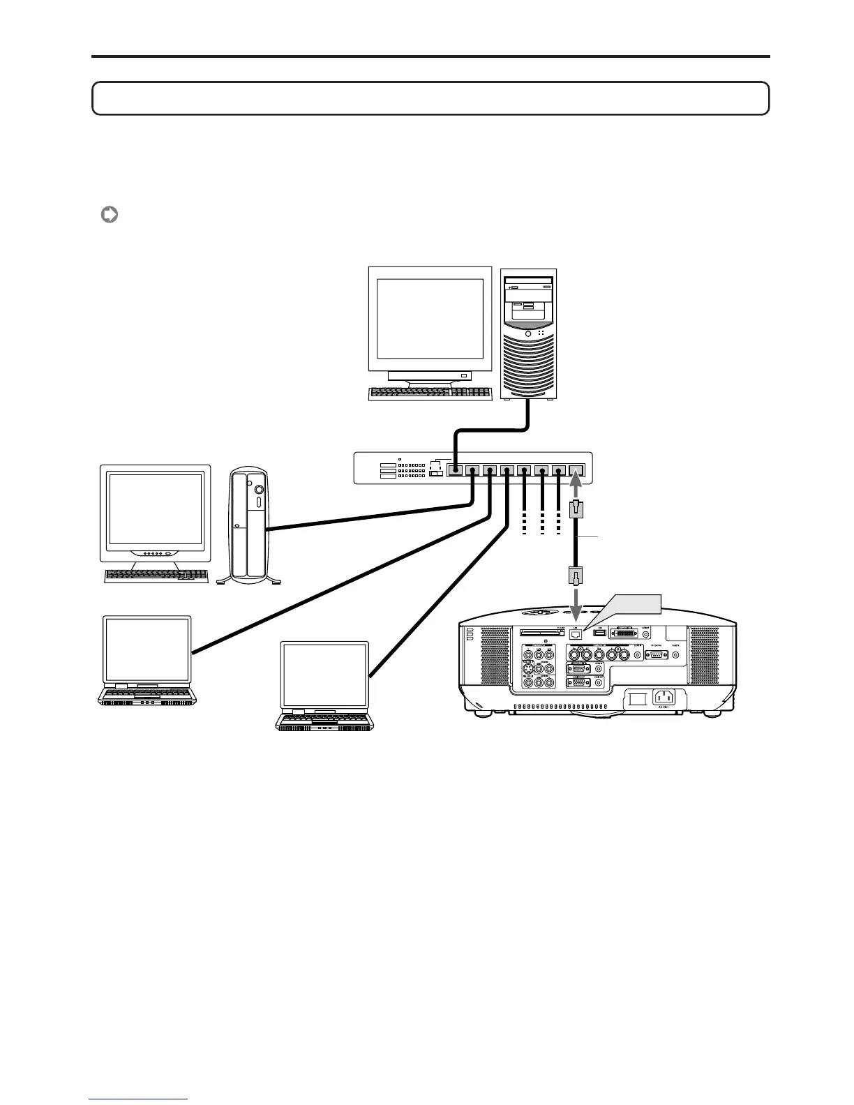 Connect a LAN cable to the LAN port (RJ-45) of the projector when connecting the projector to