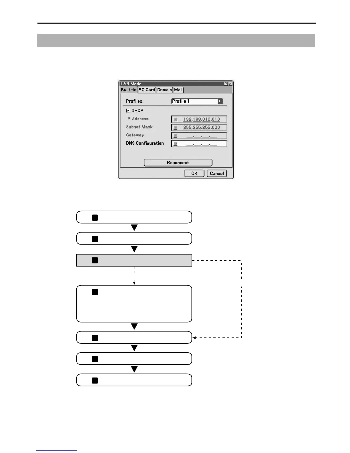When connecting a LAN cable to the LAN port of the projector, configure the LAN settings in the