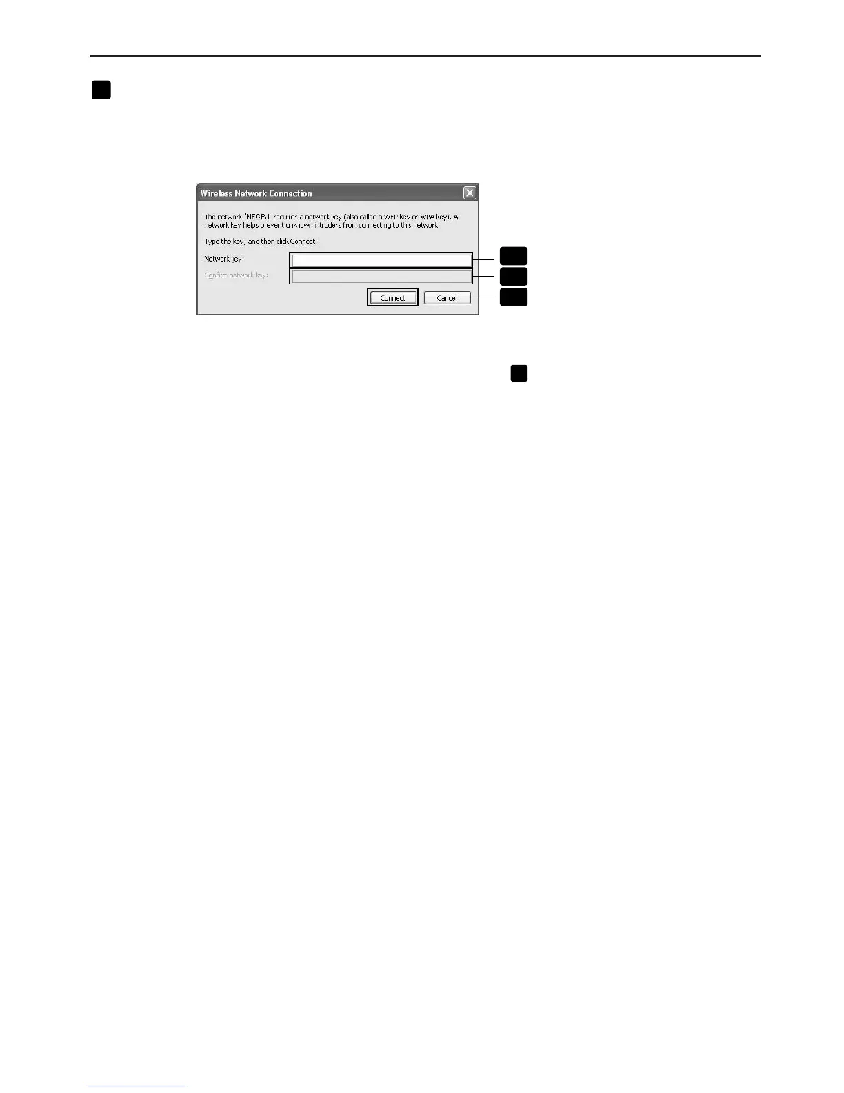 • Input an encrypiton key of “WEP”. Enter “NECVT” in the Network key box, for example, if you have