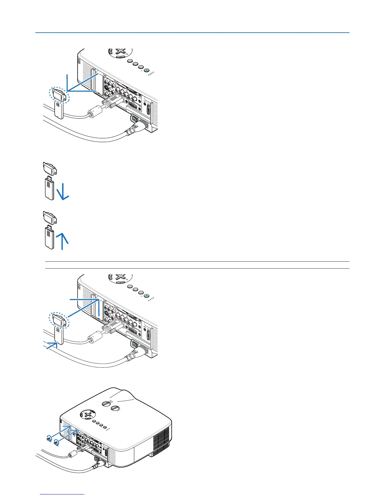 6. Insert the USB Wireless LAN Unit slowly into the USB port on the rear panel of the projector.