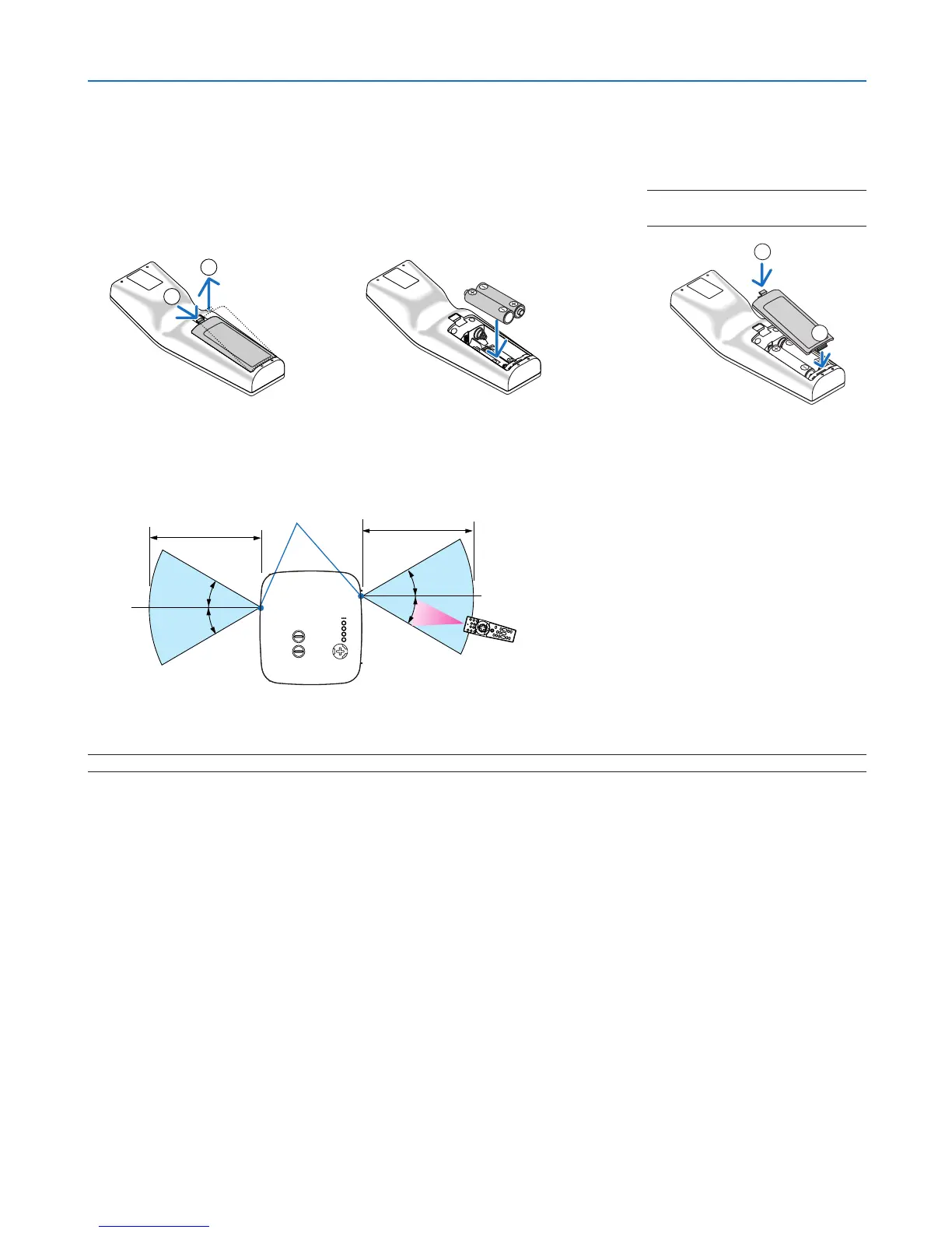 • If you will not be using the remote control for a long time, remove the batteries.