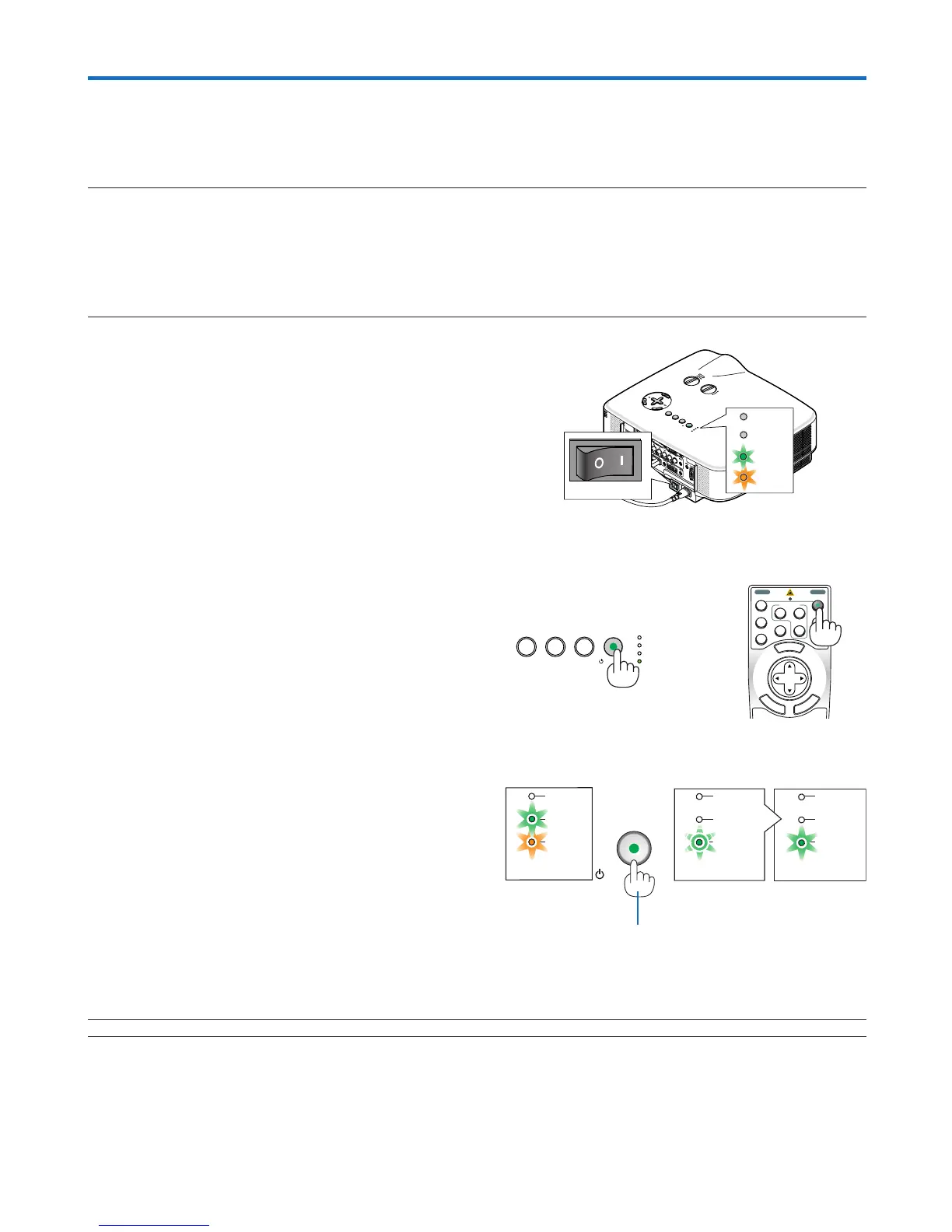 This section describes how to turn on the projector and to project a picture onto the screen.
