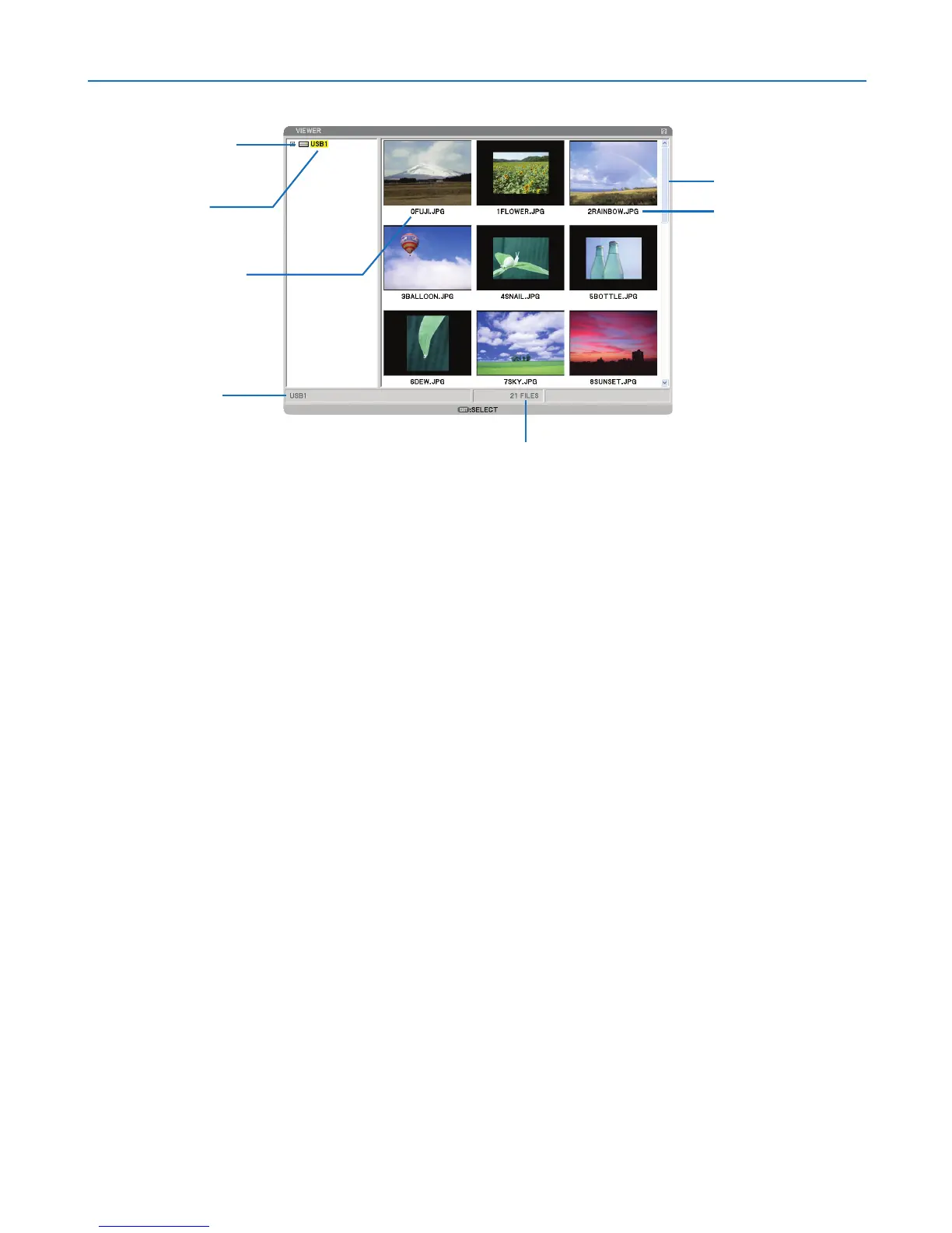Thumbnail/file name .................Indicates thumbnails and names contained in a folder.