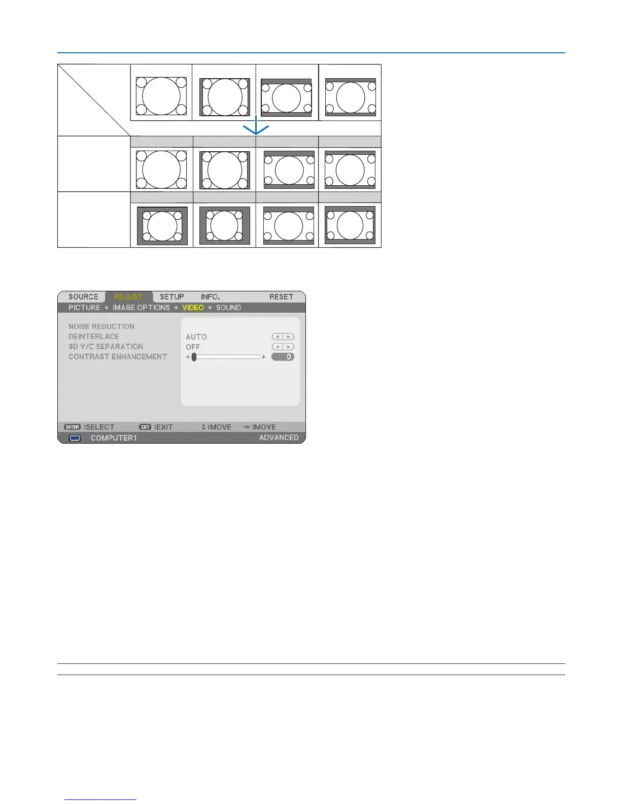 FILM ...................... Applies the automatic detection mode for telecine signals. This option is recommended for a