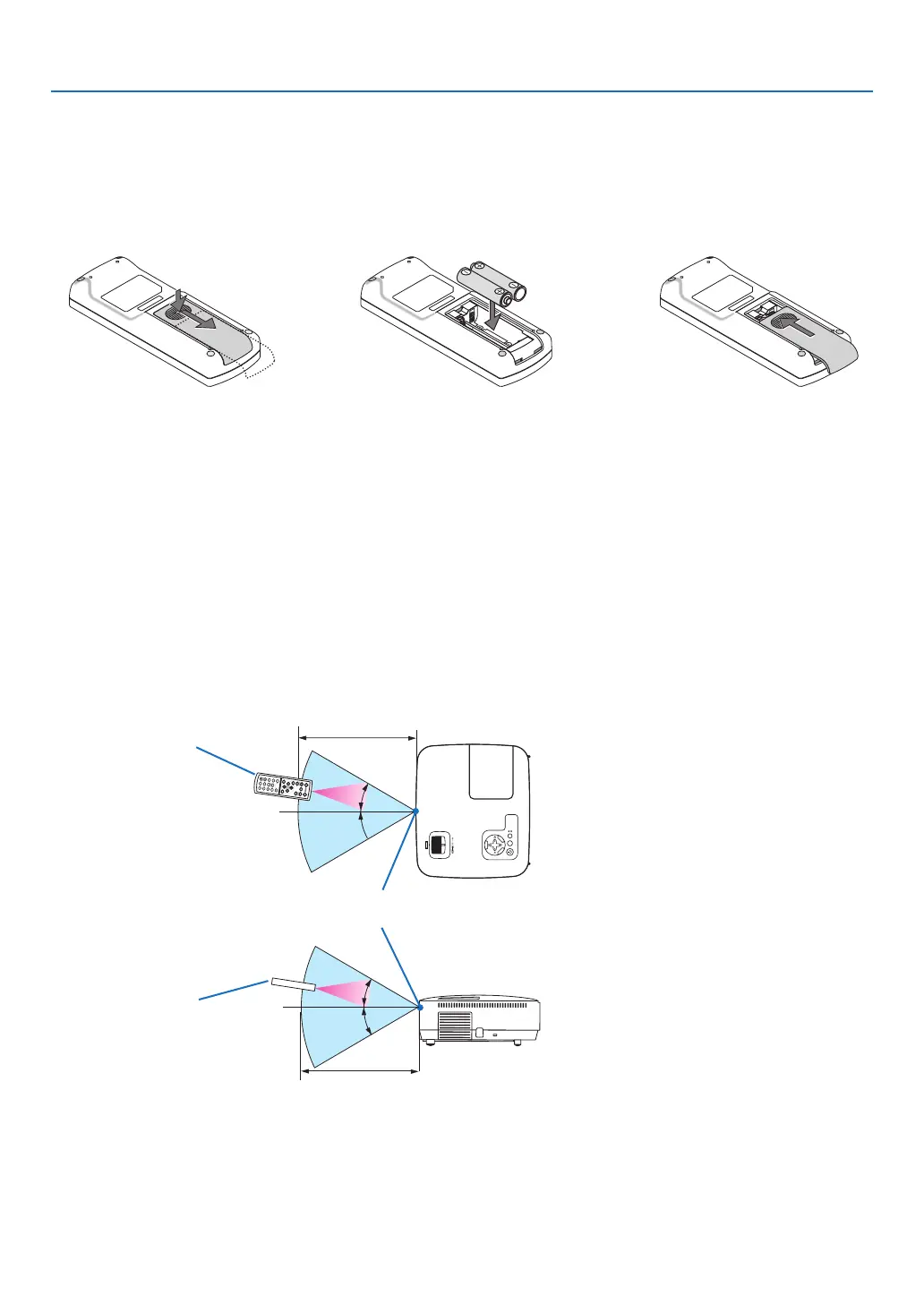 • If you will not be using the remote control for a long time, remove the batteries.