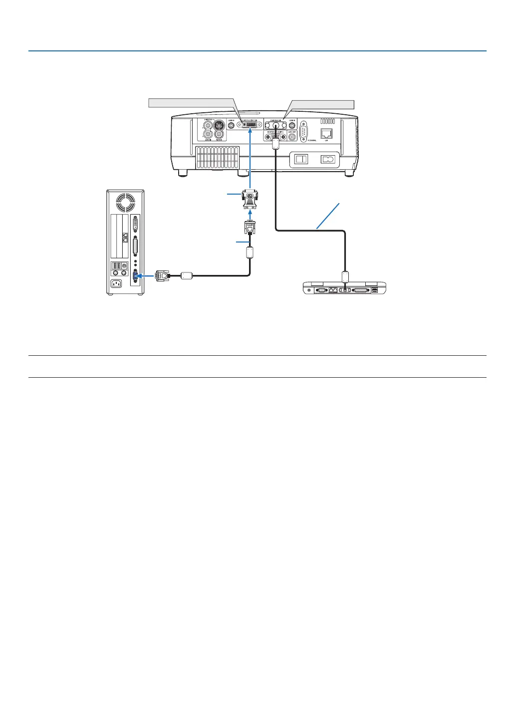 If you need to use two analog COMPUTER inputs simultaneously, connect a VGA signal cable as shown below.
