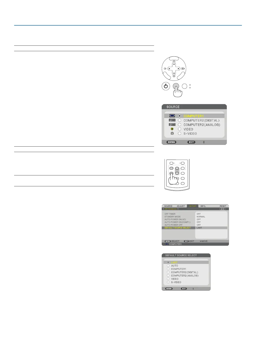 The [DEFAULT SOURCE SELECT] screen will be displayed.