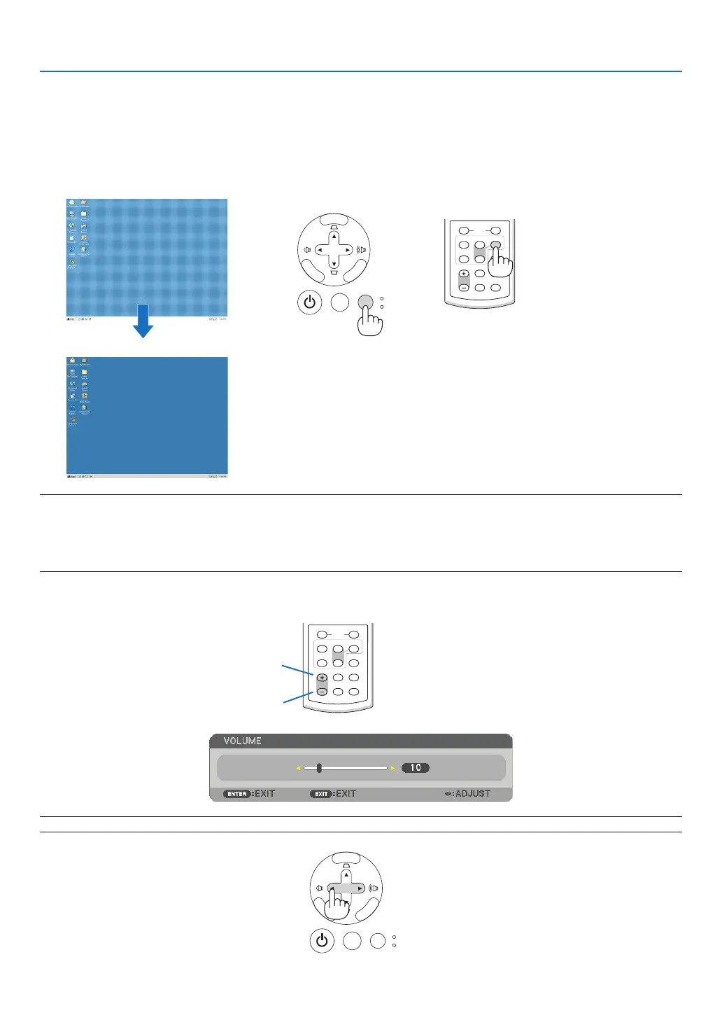 TIP: When no menus appear, the SELECT and buttons on the projector cabinet work as a volume control.