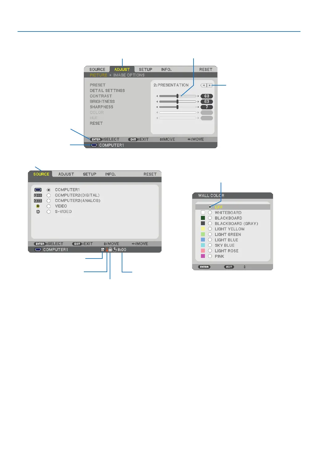 Slide bar ............................. Indicates settings or the direction of adjustment.