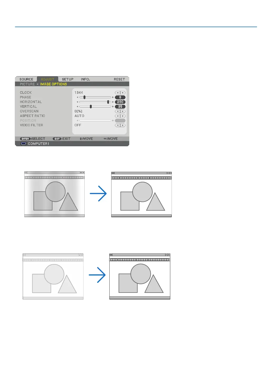 PHASE ................... Use this item to adjust the clock phase or to reduce video noise, dot interference or cross talk. (This is