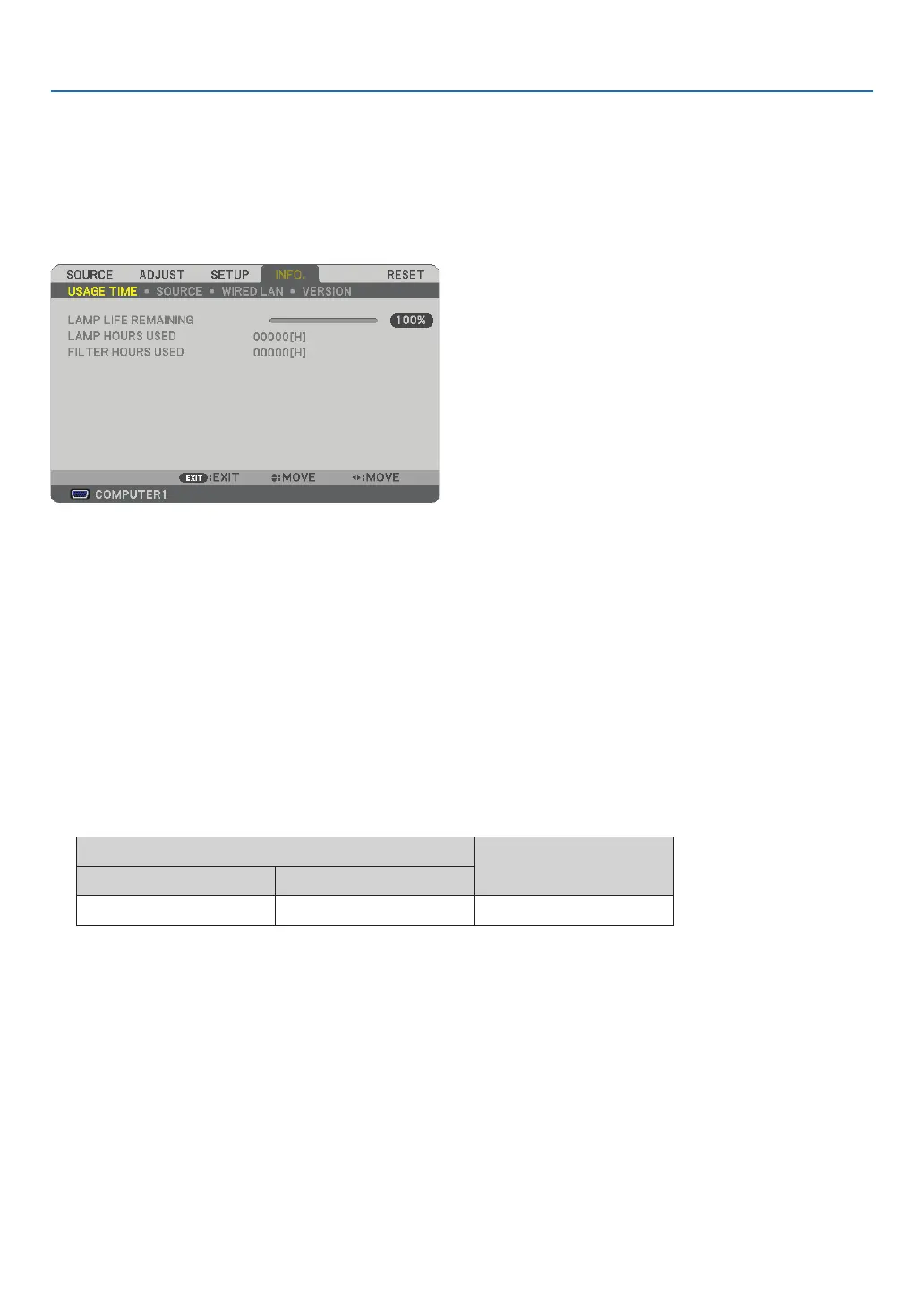 The value informs you of the amount of lamp usage. When the remaining lamp time reaches 0, the