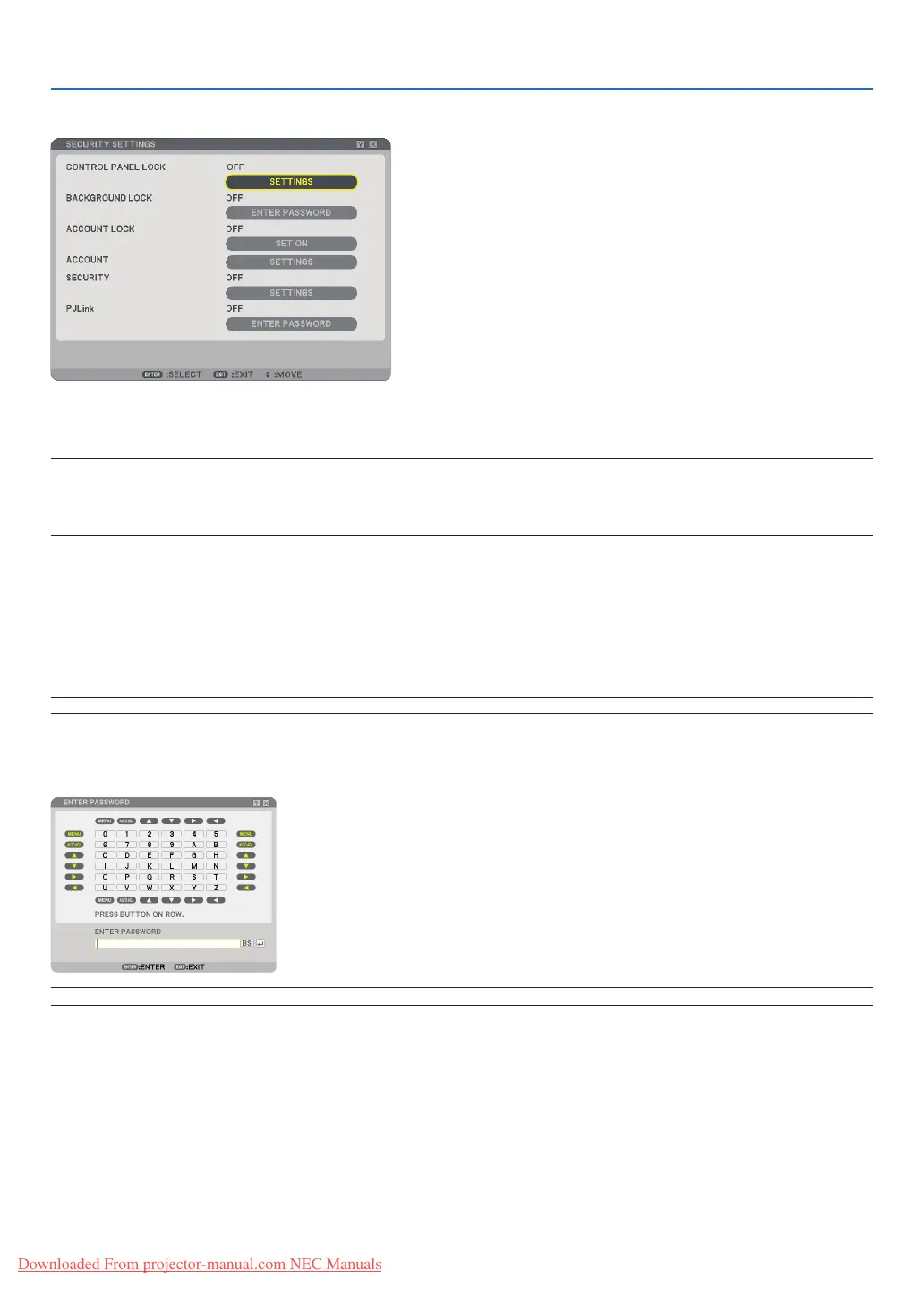 Select the [ENTER PASSWORD] entry box and press the ENTER button. (