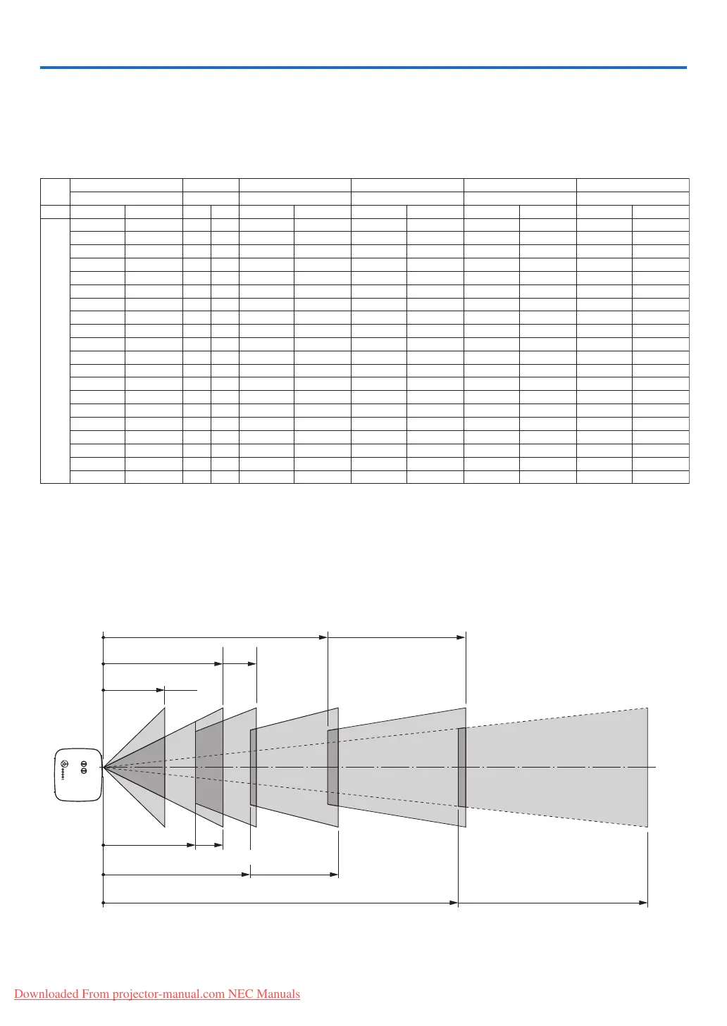 Table of Throw Distances and Screen Sizes for Optional Lenses