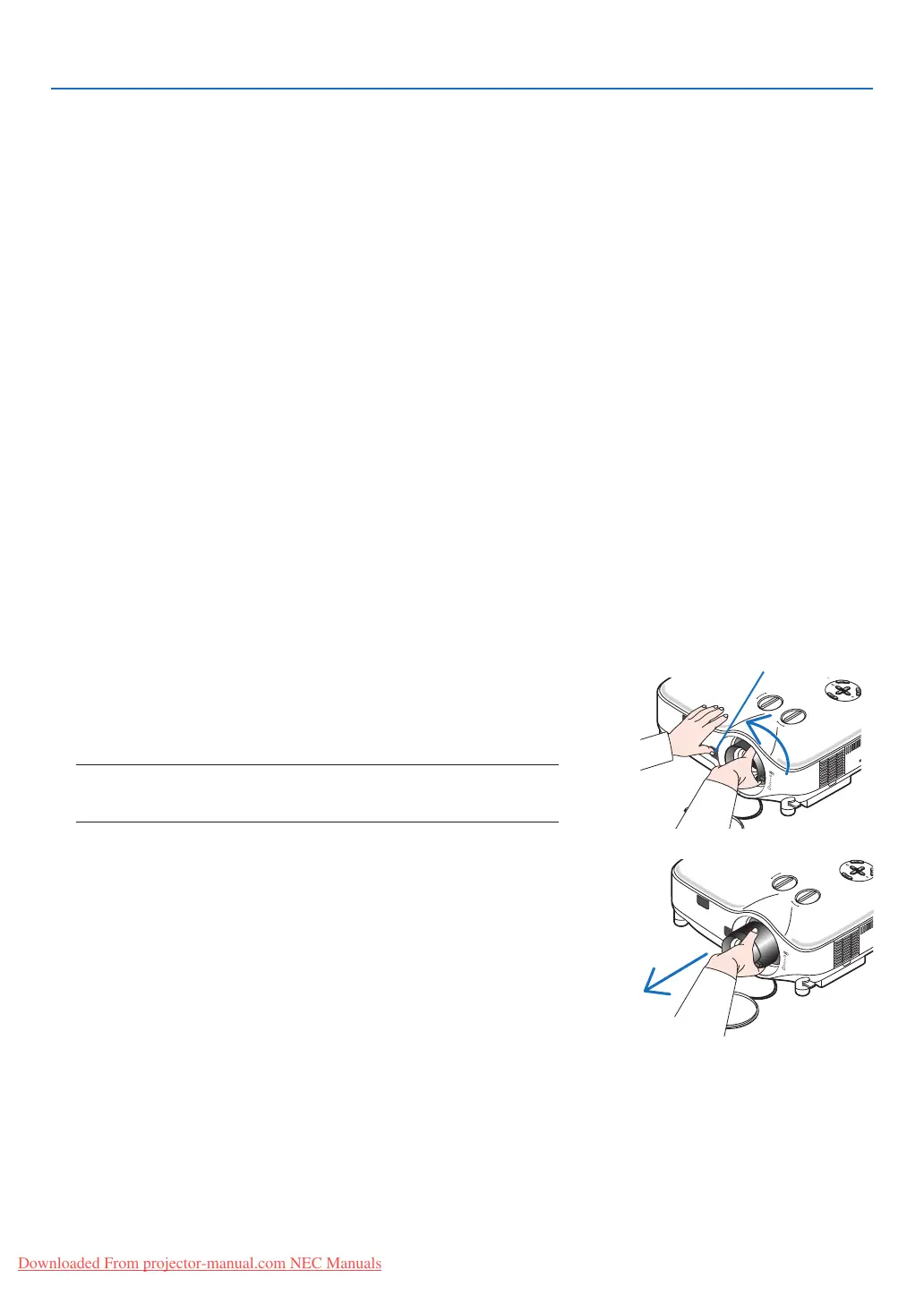 • Before removing or installing the lens, be sure to turn off the projector, wait until the cooling fans stop, and turn