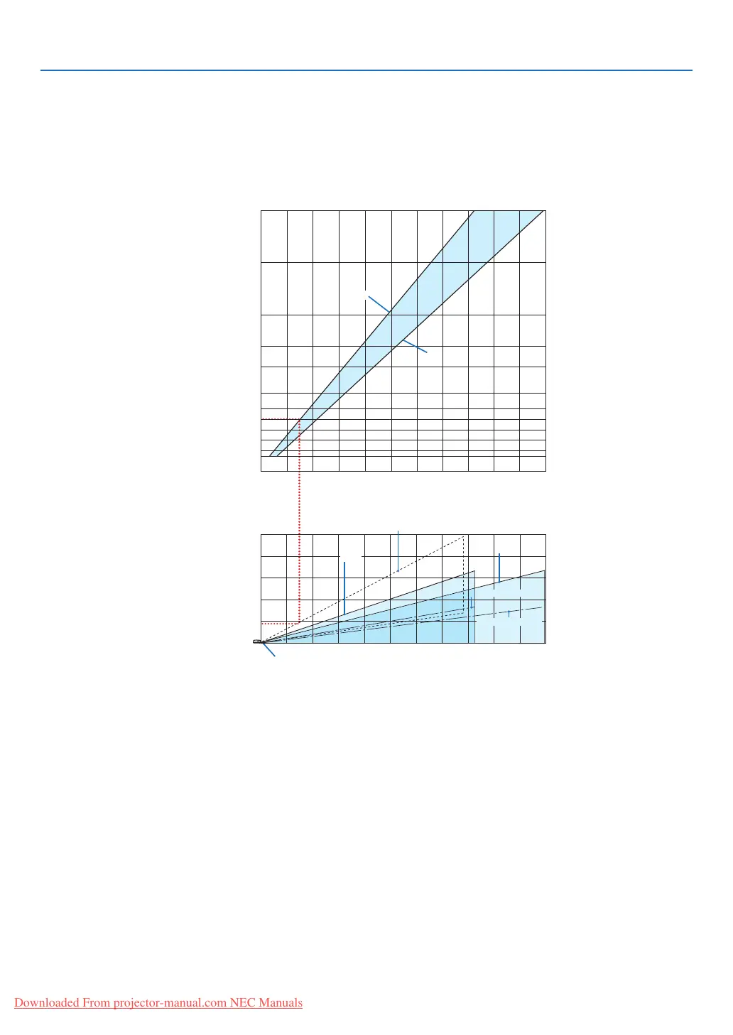 m/55 inches. The projection angle can be adjusted up to 10°. (The lower chart shows that the projector is placed in