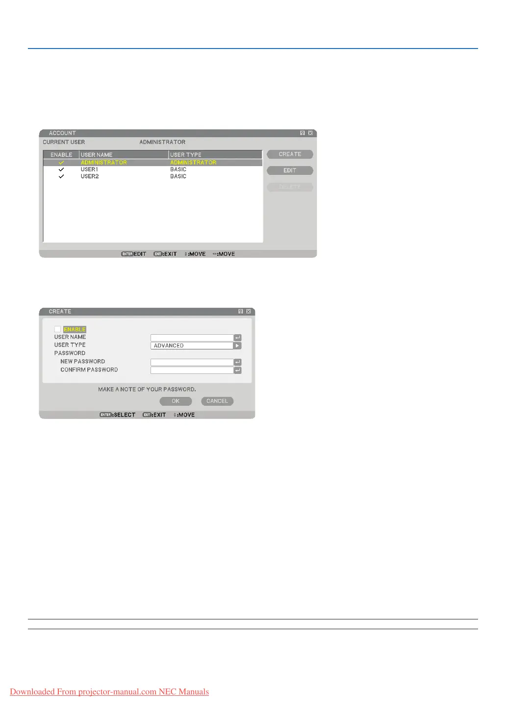 NOTE: Up to 12 user names can be created.