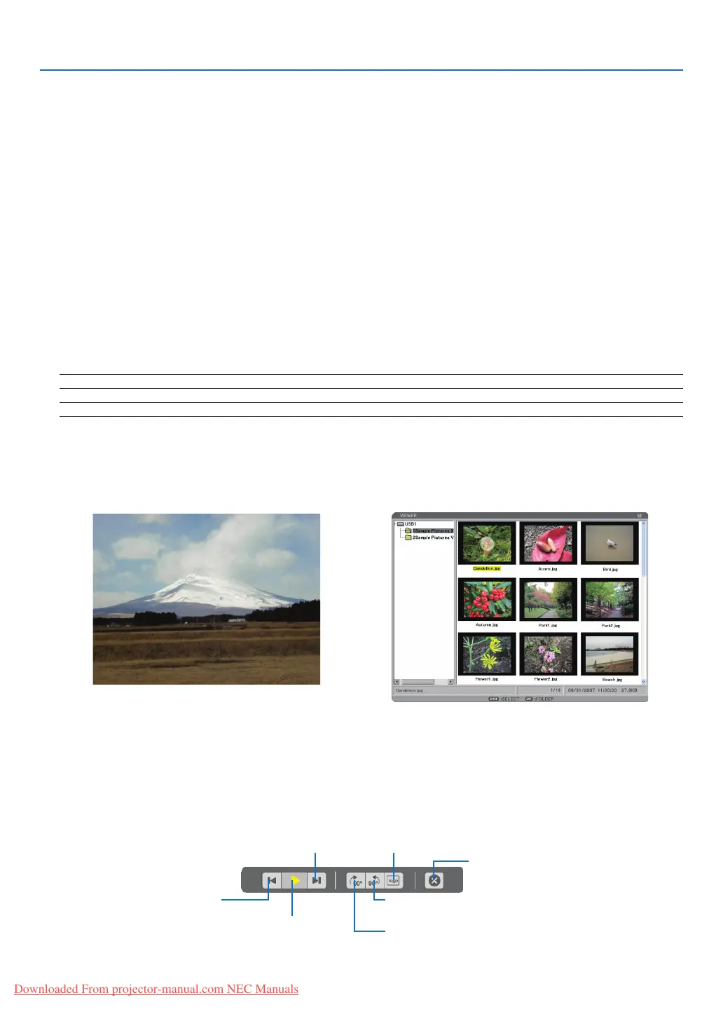 This section describes the operation for showing slides created using the Viewer function with the projector. It is