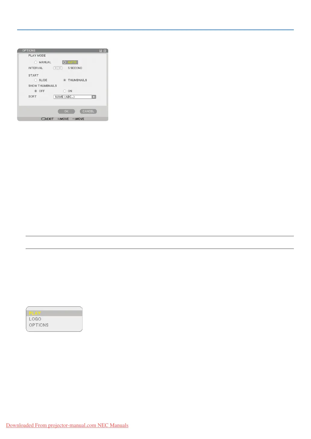 the next slide when [MANUAL] is selected in the [PLAY MODE].