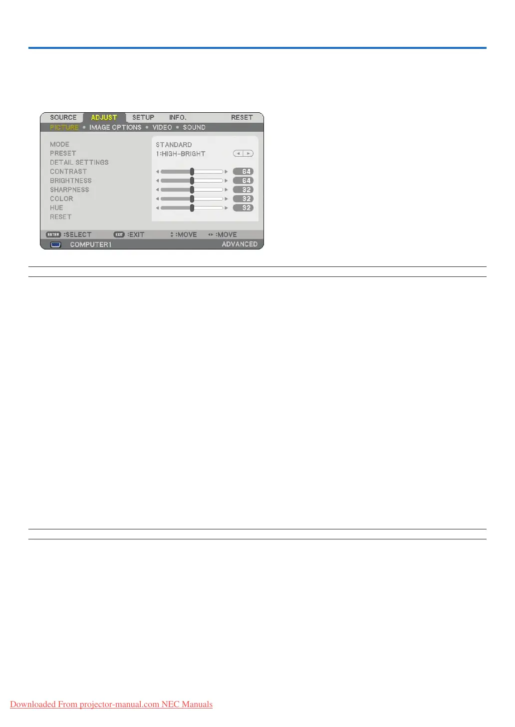 7. Repeat steps 2 -6 to adjust an additional item, or press the EXIT button on the remote control or the pro