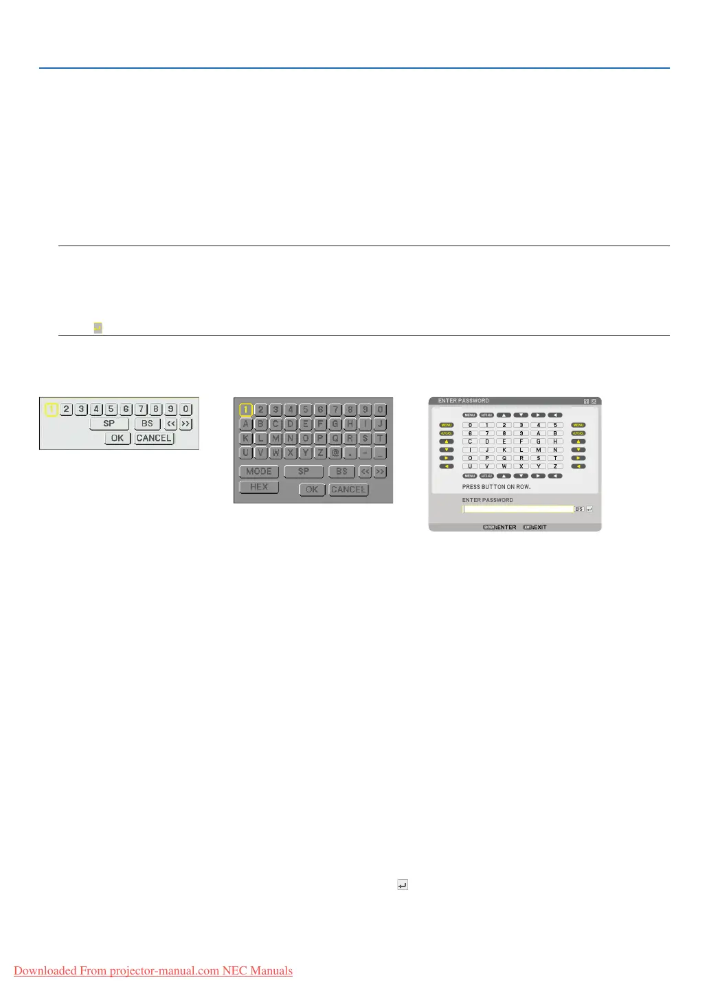 [IP ADDRESS, PASSWORD] [USER NAME, PROJECTOR NAME] [PASSWORD OR KEYWORD]
