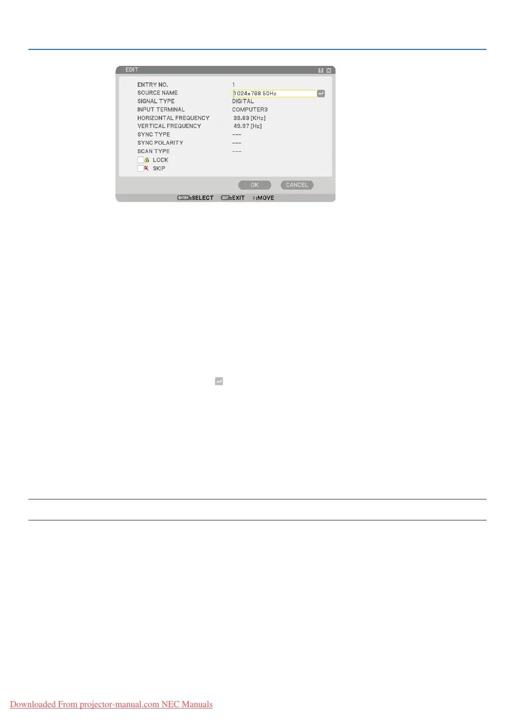NOTE: When all the signals in the [ENTRY LIST] are deleted, the currently projected signal will be also deleted except locked sig-