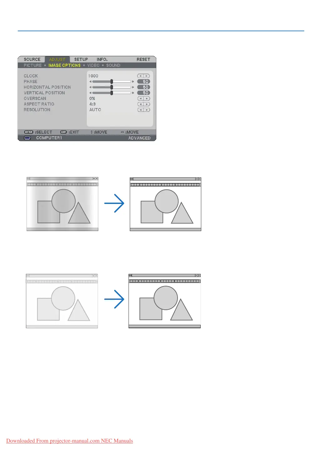 PHASE ................... Use this item to adjust the clock phase or to reduce video noise, dot interference or cross talk. (This is