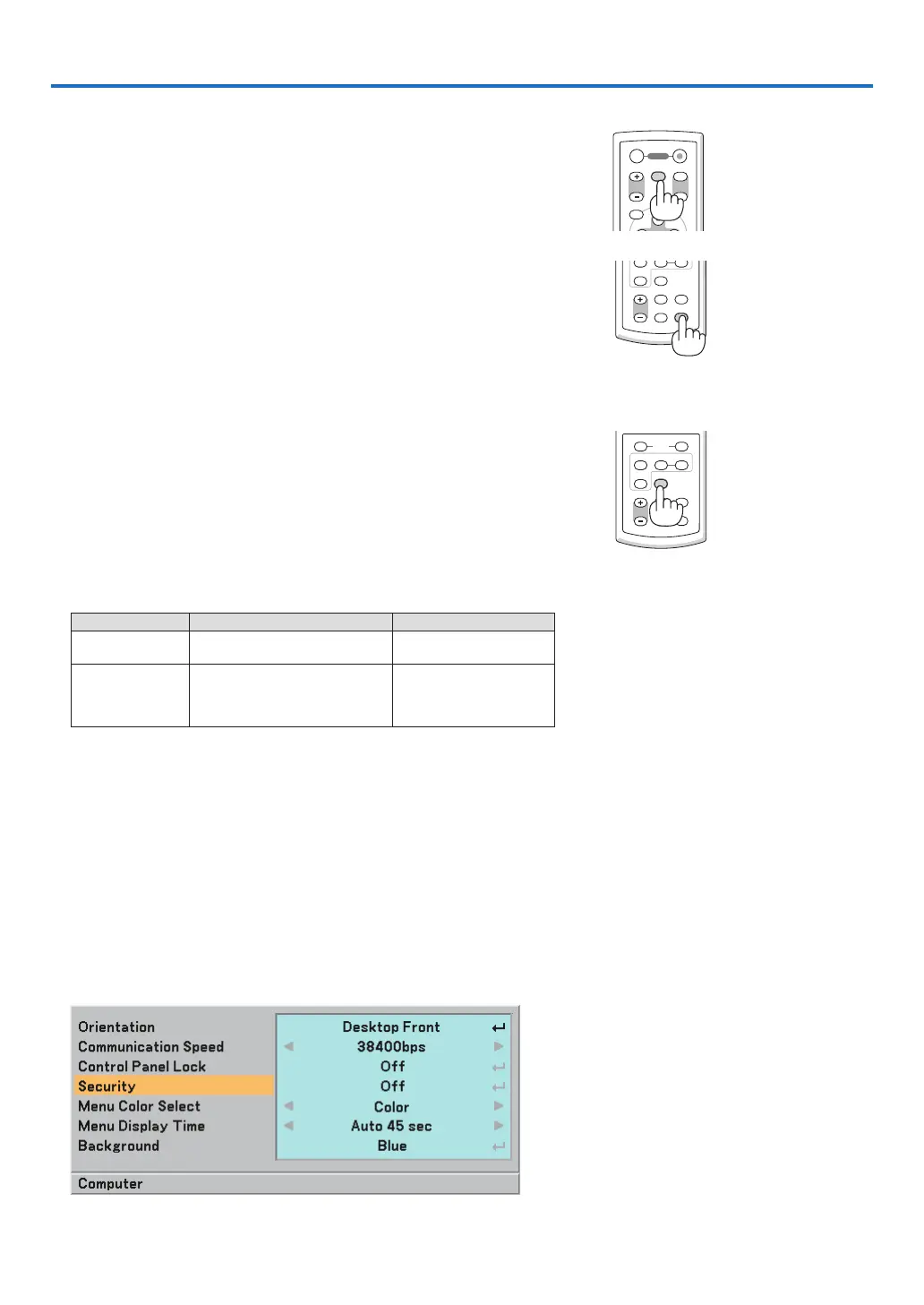 A keyword can be set for your projector using the Menu to avoid operation by an unauthorized user. When a key-
