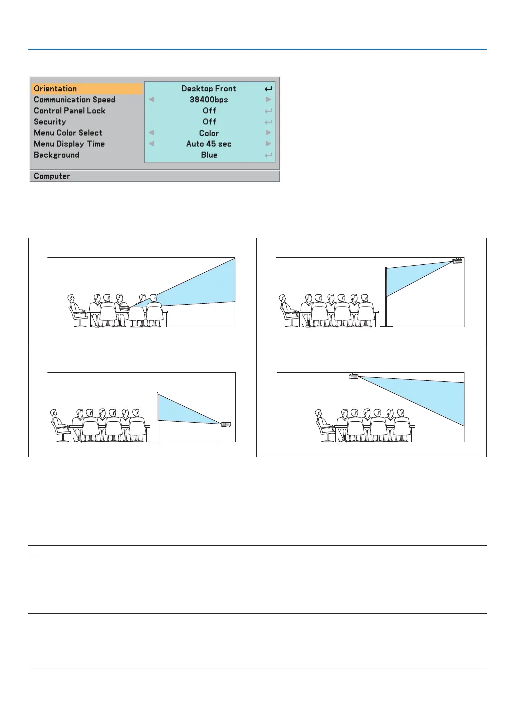 Selecting Projector Orientation [Orientation]
