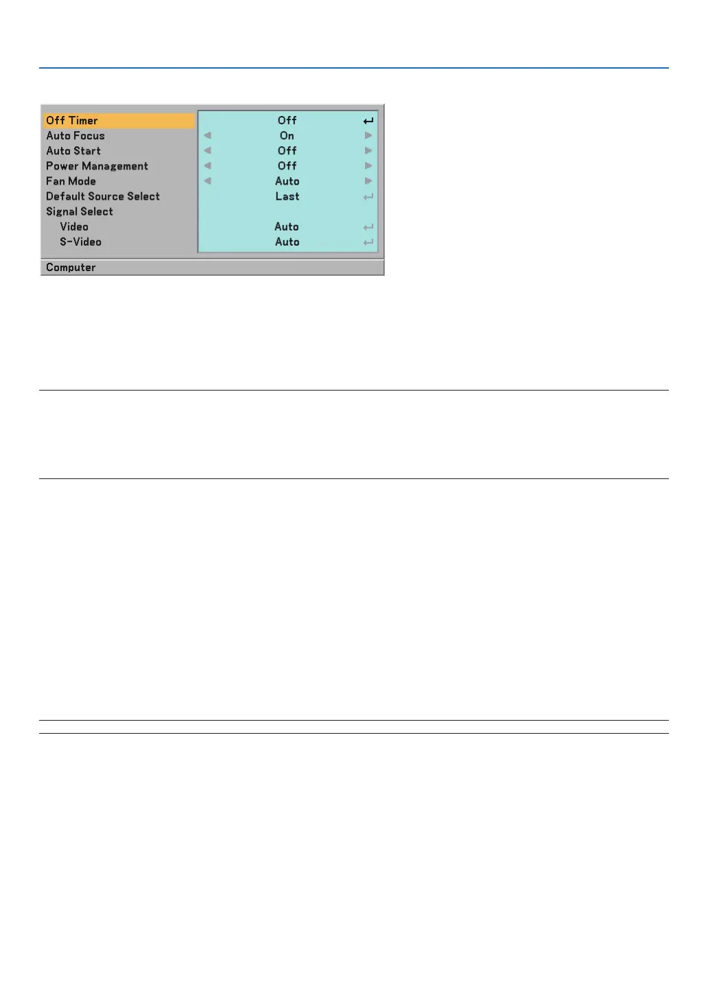 You can use the Off Timer feature to turn off the projector automatically at a preset time.