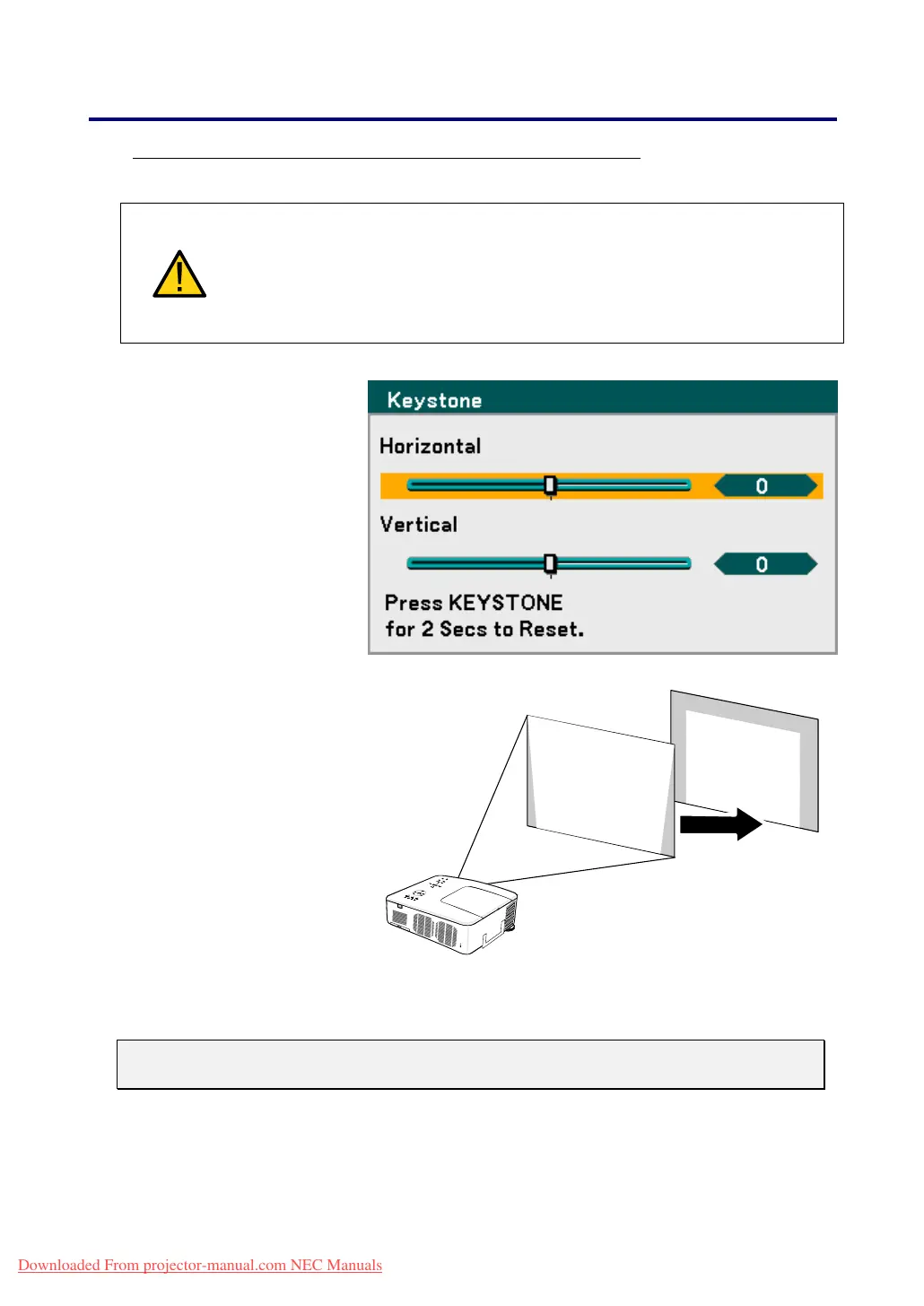 Holding down the Keystone button 2 seconds resets the default keystone values.