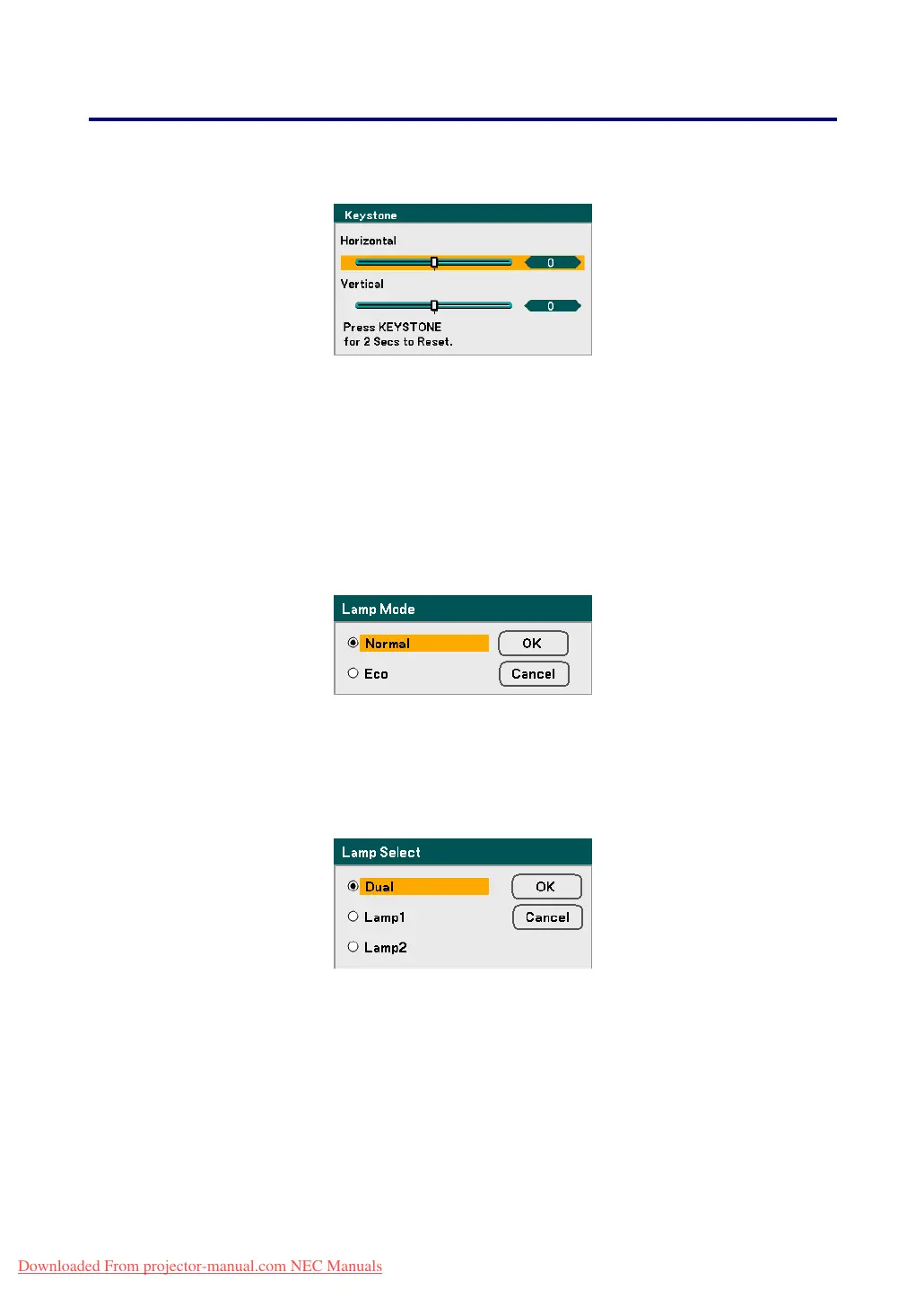 Select Normal or Eco from the lamp mode window. The lamp life can be extended by us-