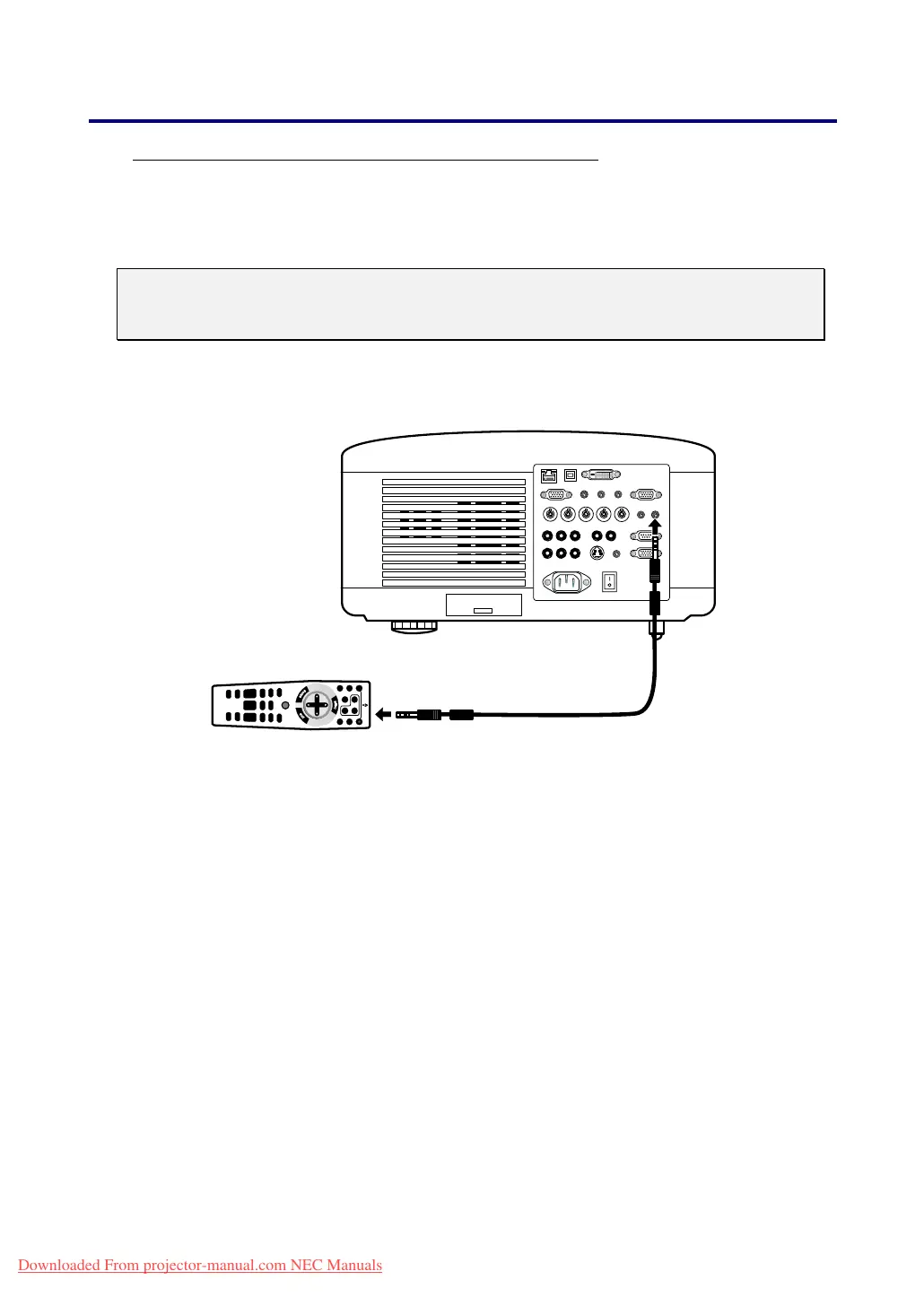 Connect the supplied remote cable to the REMOTE2 jack on the projector (see r Ter-