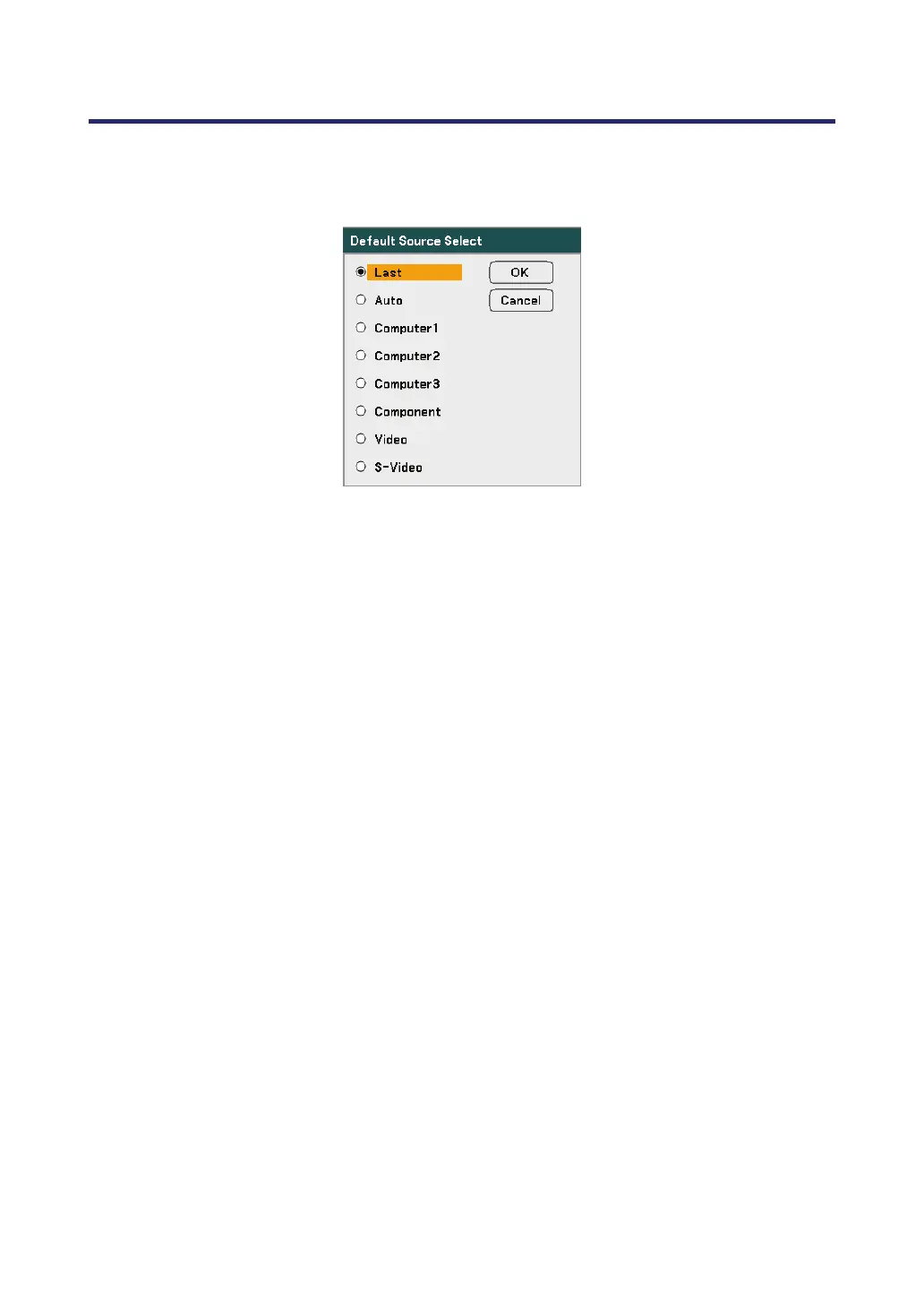 The Default Source is the image source that the projector will search for automatically