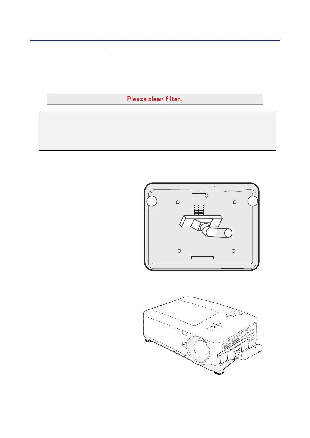 mended to clean the filters more frequently. If the filter is dirty or clogged, your projector